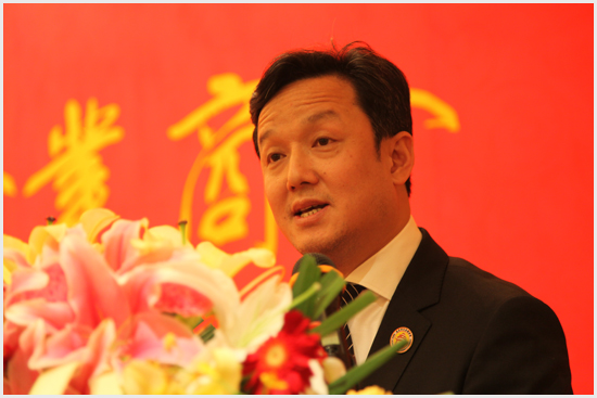 晋江商会会长邀请理事长、监事长、第一常务副会长、秘书长上台一同祝酒
