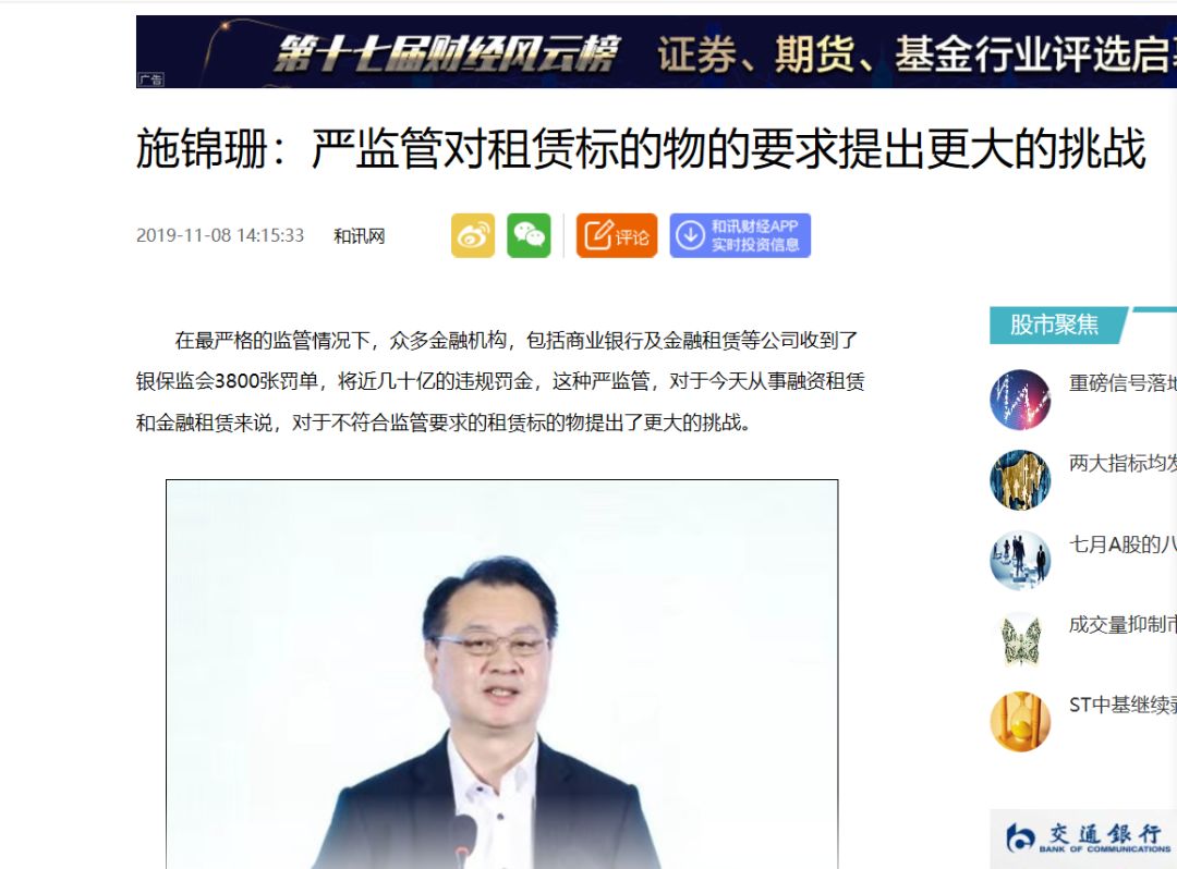 和讯网:《施锦珊:严监管对租赁标的物的要求提出更大的挑战》
