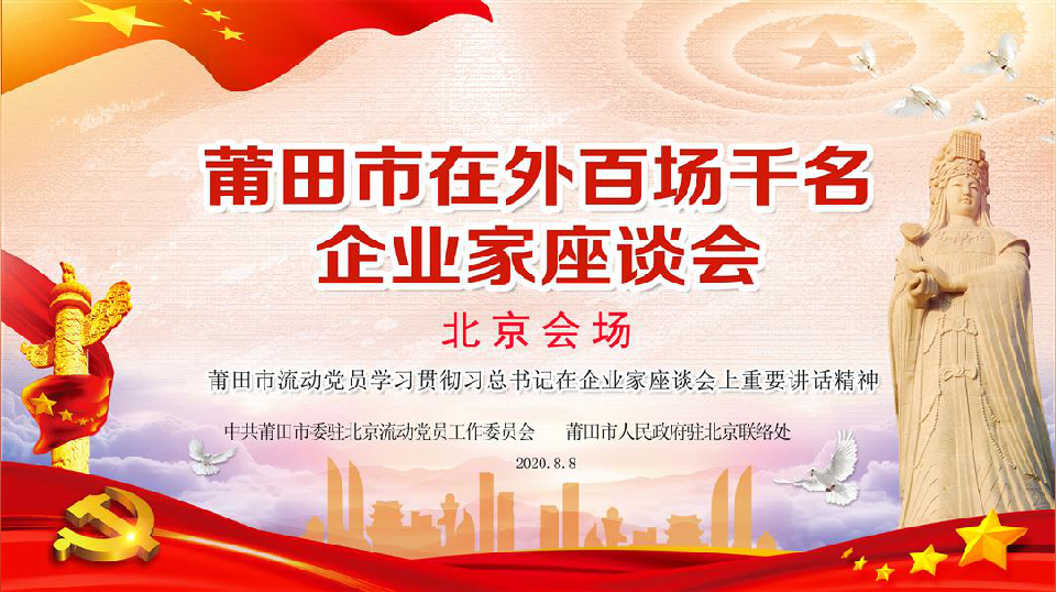8月8日,莆田市在外百场千名企业家座谈会(北京会场)在京召开。会议传达学习了习近平总书记在企业家座谈会上的重要讲话精神,与会人员结合自身实际就学习贯彻习近平总书记的重要讲话精神畅谈感想体会,向广大莆籍企业家发起“弘扬企业家精神、争当新时代楷模”倡议。北京福建企业总商会党委书记、会长,莆田市委驻京党工委副书记、北京莆田企业商会永远荣誉会长陈春玖,总商会常务副会长兼秘书长、北京莆田企业商会名誉会长张志雄、总商会常务副会长、北京莆田企业商会名誉会长谢冬通,北京莆田企业商会执行会长郑国辉、傅占鹉、林华东,北京莆田企业商会党总支副书记朱金建,党总支专职副书记兼常务副会长林彬,北京莆田企业商会常务副会长黄金标、张新、卓清山、郑志坚、林元太等出席会议。
